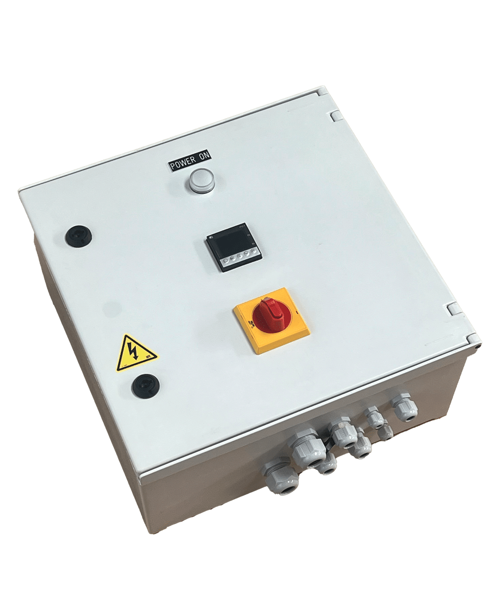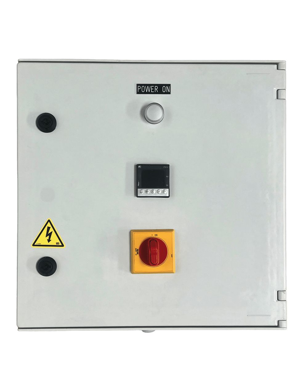 The Galvabox 5T15-3 is a compact, robust, and easy-to-use three-phase control cabinet, specifically designed for demanding industrial environments. With its digital display PID controller and extended compatibility, it enables precise and secure management of heating systems up to 15 kW under 400V three-phase.